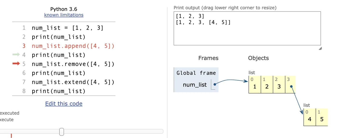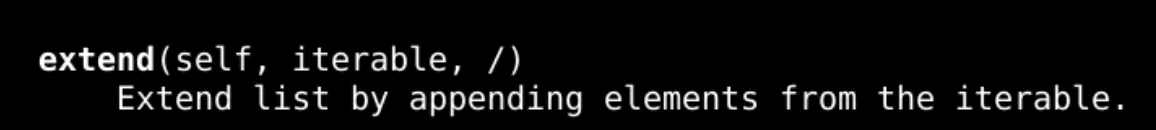 特点 将元素作为整体添加到列表末尾 把新列表对接到原列表尾巴上,合并两个列表