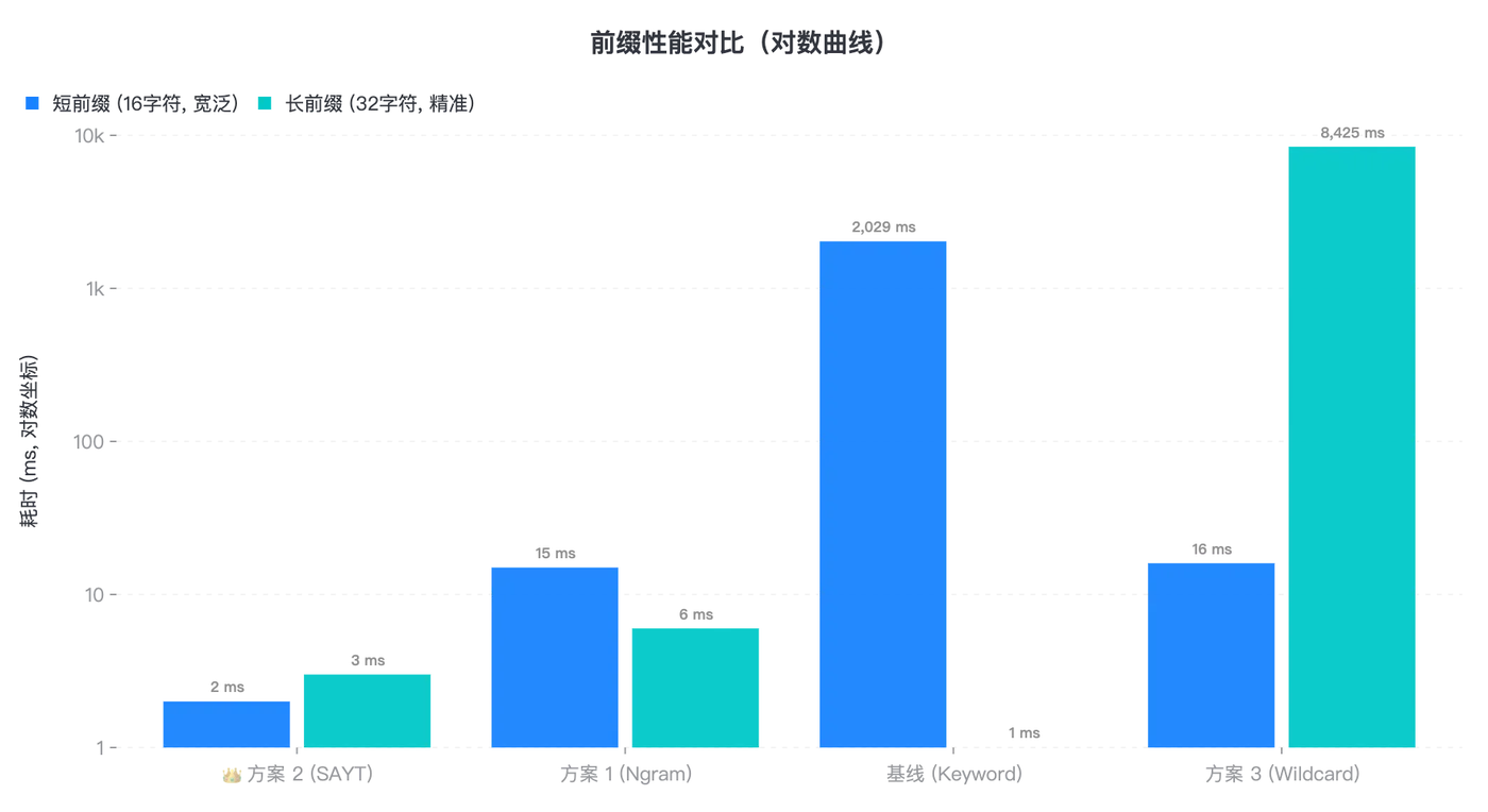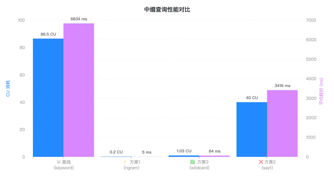 工程平衡: 虽然比 Ngram 慢,但 64ms 依然是极佳的实时响应,且不需要改代码。 |