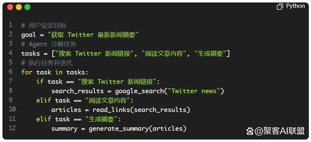注:实际代码需结合 API 调用(如 OpenAI、Google 搜索)和工具链。
