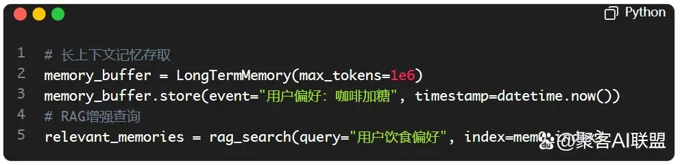 短期记忆:100万token上下文窗口 + RAG增强检索(如Mem0的向量索引)