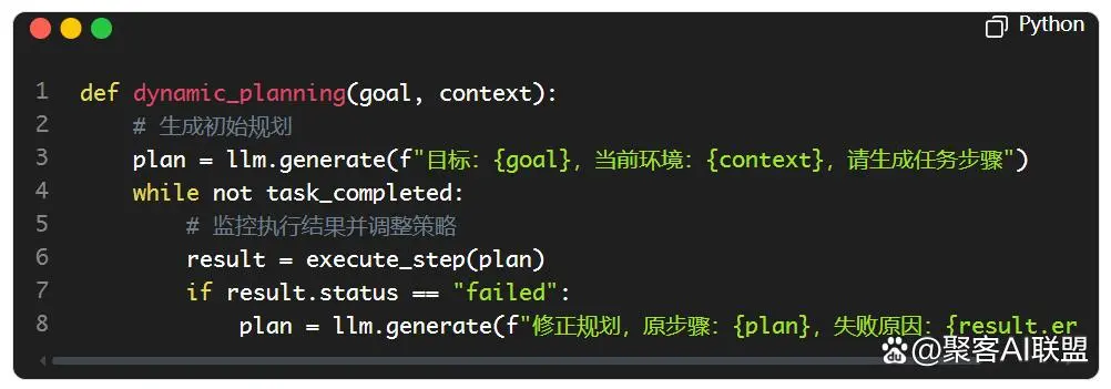 动态调整:基于环境反馈实时重规划(如任务失败时自动切换工具)
