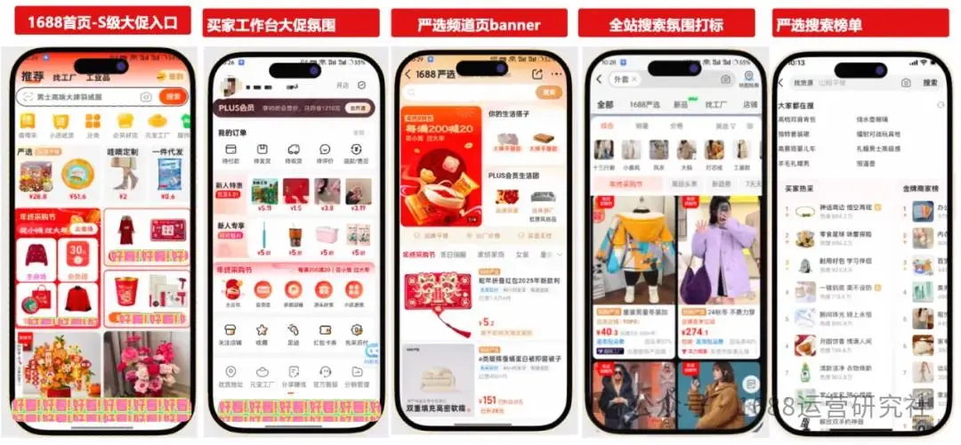 1688年终采购节作为1688平台专为买家打造的大促活动,依托产业带优势,直接链接核心产业带,旨在为下游用户提供更丰富的好货/好价/好服务的产品,满足亿万级目标市场用户的采购需求,聚焦新品与下游爆款趋势, 帮助商家链接更多高价值买家 ,欢迎广大商家踊跃报名,把握商机!