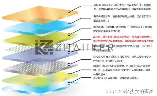 OLED 与 miniLED 以及 MicroLED 最大的不同是:OLED 是有机发光二极管(Organic Light-Emitting Diode),它的发光依靠的是正负极之间的有机化合物涂层实现的,当电流通过的时候,电荷载流子从电极迁移到有机薄膜中,直到它们在形成激子的发光区域中重新结合。一旦形成,这些激子或激发态通过电发出光同时不产生热量或者产生极低的热量,降低了效能。