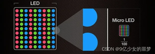 那么,MicroLED 呢?虽然它也是由一个个有机灯泡组成,不过人家是真的做到了像素级的大小,因此,你可以称这些灯泡为“小灯珠”,真像素级别。然后将这些“小灯珠”拼凑在一起,成为了一整块面板,一整块屏幕。我们常常看到街边有 LED 广告牌,上面的大屏幕就是用一个个发光的 LED 灯泡“拼凑”而成的,MicroLED 本质上也是如此,只不过它的 LED 灯泡小到像素级。