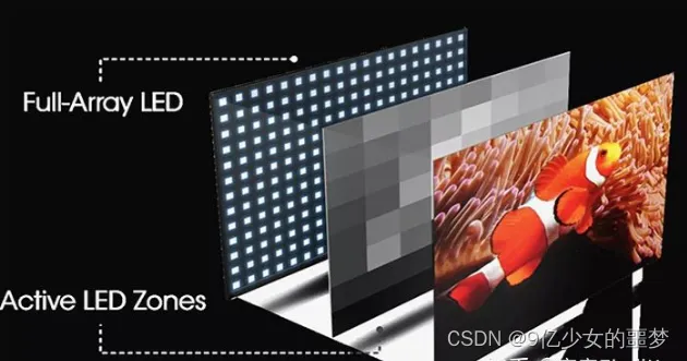 它是个背光技术,但并不是一块LCD。为什么呢?因为 miniLED 虽然很小,但还不足以小到与单像素相当。因此,它与我们通常说的侧入式背光以及直下式背光技术是背光技术的一种,是全阵列区域调光(FALD)区域中配置的微型背光形式。