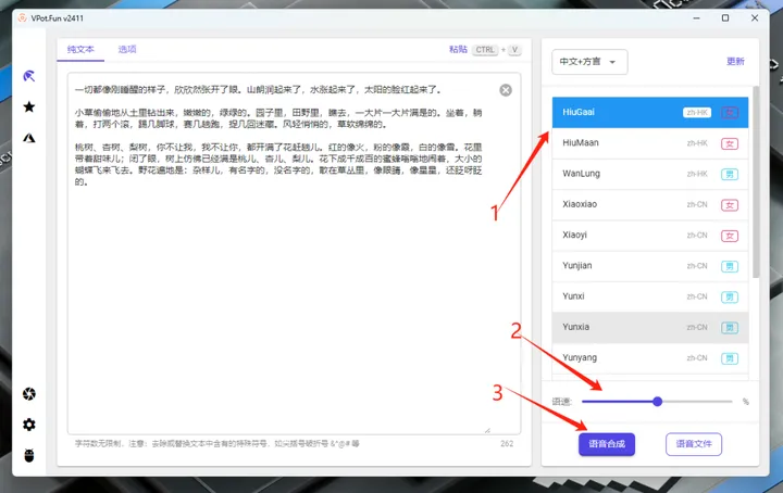 VPot是一款基于edge语音引擎开发的免费语音合成工具,可帮助我们轻松合成各种语言的语音文件,以满足视频制作需要。