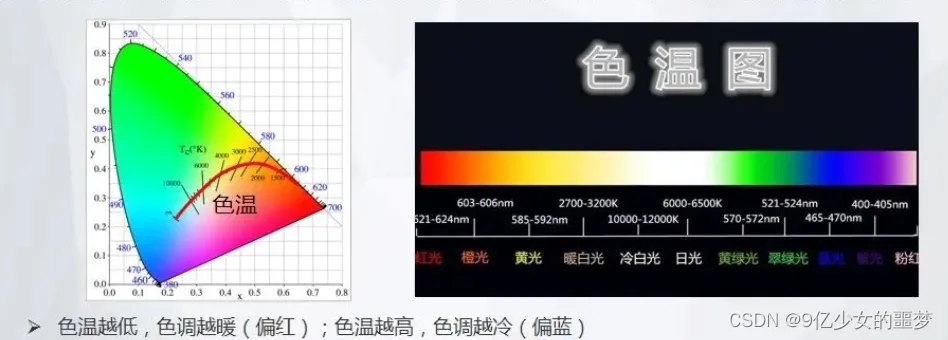 色温(color temperature)是表示光线中包含颜色成分的一个计量单位。从理论上讲,色温是指绝对黑体从绝对零度(一273C)开始加温后所呈现的颜色。黑体在受热后逐渐由黑变红,转黄,发白最后发出蓝色光。单位为K(开尔文);