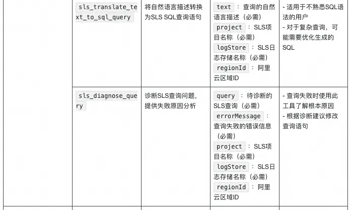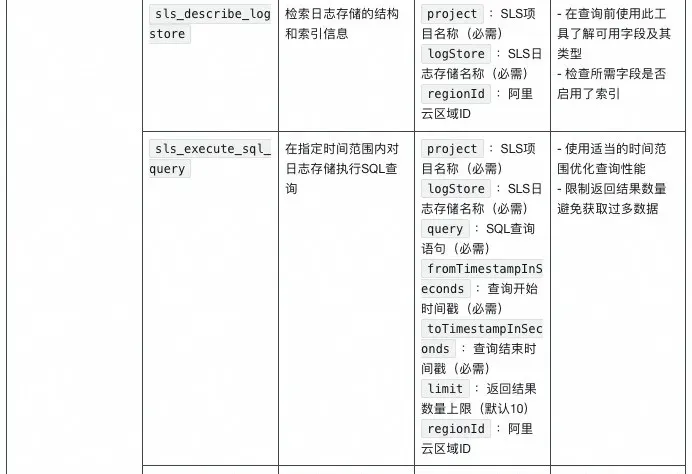 - 用途:调用阿里云SLS日志MCP接口查询应用日志、访问日志和系统运行日志。