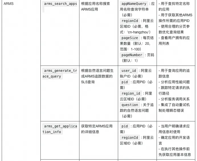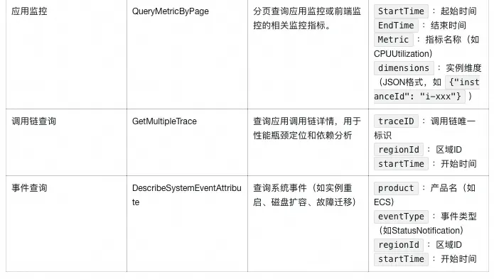 - 用途:调用链路监控MCP接口查询链路监控及APM数据(如调用链详情)。