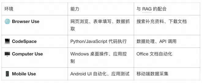AgentBay 是一个云端 Agent 工具平台,提供四大执行环境: