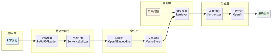 1.5 层架构:数据处理 → 索引 → 检索 → 合成 → 生成;