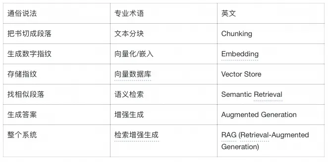 1.把书切成一段段(比如每段 500 字),这叫 Chunking。