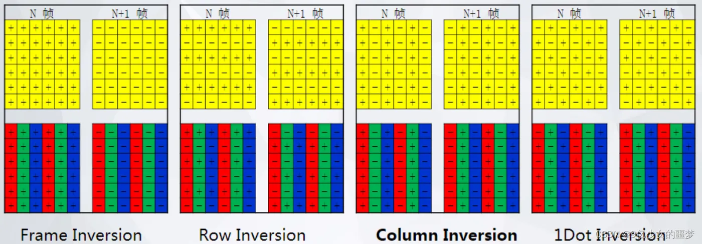 目前常用列翻转方式,省功耗,画面闪烁相对较小: