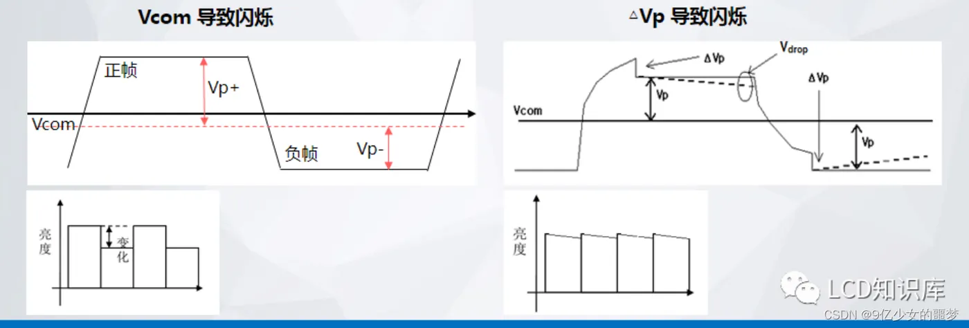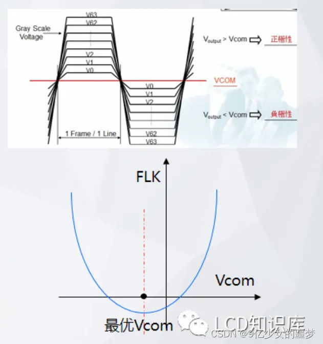基于以上的LCD显示原理,我们很容易想到两个原因出现画面闪烁一是正负顿的驱动导致亮度差异;( Vcom相关 )