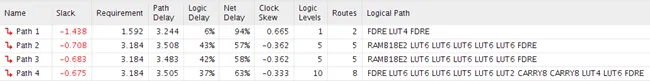 如果逻辑延迟大,我们需要查看该路径是不是只包含CLB器件,还是说该路径还经过了如DSP、RAMB、URAM、FIFO或GT等器件。