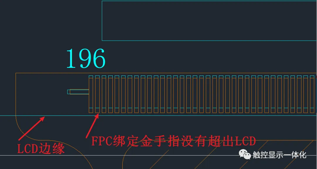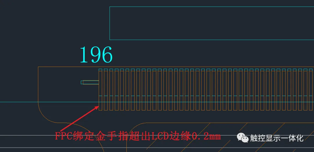①FPC绑定金手指应超出LCD边缘0.2mm,且绑定后需点一线硅胶避免弯折FPC导致绑定金手指LCD边缘处整体断裂且一线硅胶可以避免水汽进入ACF导致绑定FPC气泡脱落;
