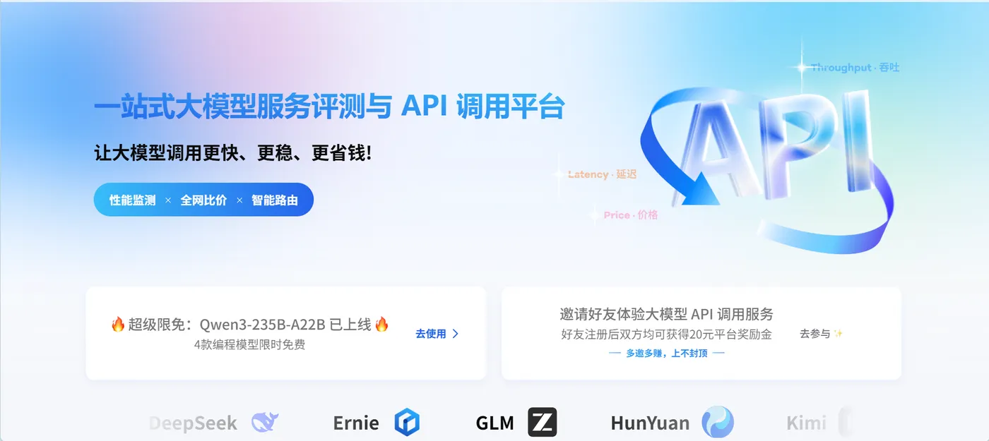 这些能力使得开发者能够“一键调用”,自动路由至当前综合表现最优的服务商(兼顾性能、稳定性与成本),真正实现 “让大模型调用更快、更稳、更省”的承诺。