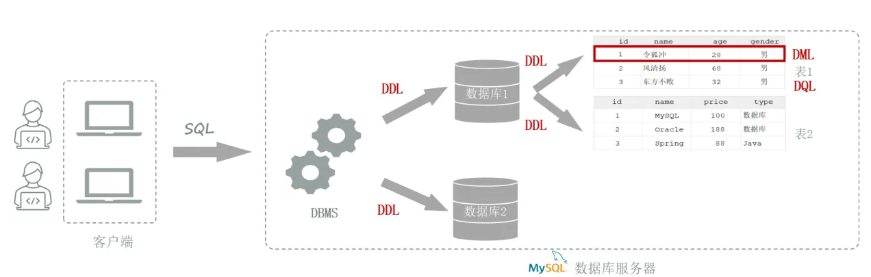-- 查询所有数据库 show databases; -- 查询当前数据库 select database(); -- 使用/切换数据库 use 数据库名; -- 创建数据库 create database [if not exists] 数据库名 [default charset utf8mb4]; -- 删除数据库 drop database [if exists] 数据库名;