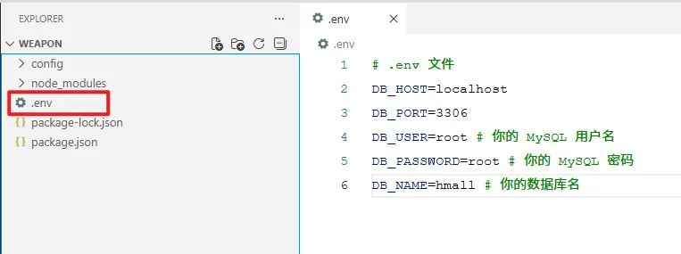 # .env 文件 DB_HOST=localhost DB_PORT=3306 DB_USER=root # 你的 MySQL 用户名 DB_PASSWORD=123456 # 你的 MySQL 密码 DB_NAME=weapon_skins_db # 目标数据库名