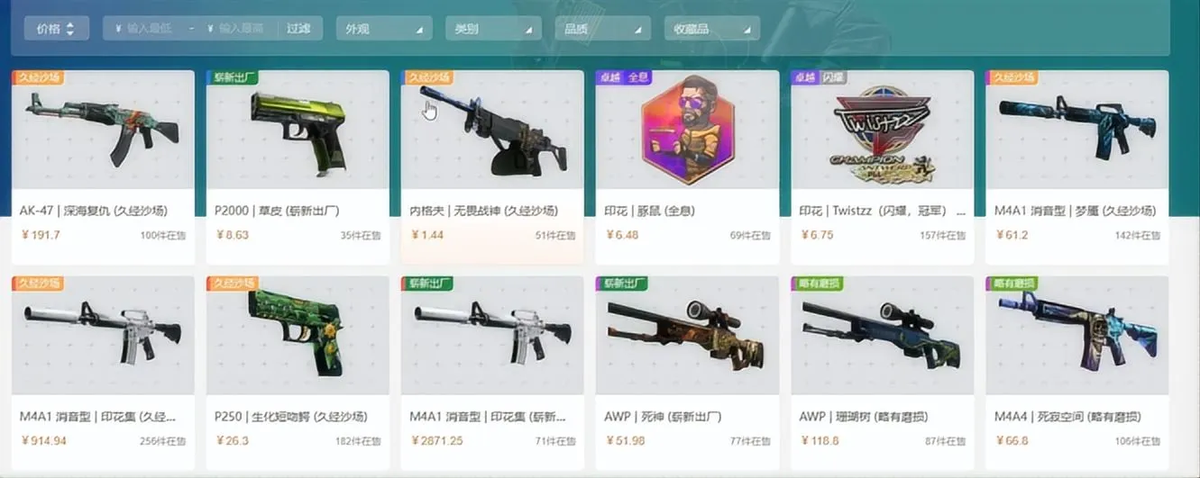 select name, price, stock from weapon_skins where category = '印花' and appearance = '略有磨损' order by price asc limit 30, 15; -- 起始索引=(3-1)*15=30,查询15条记录