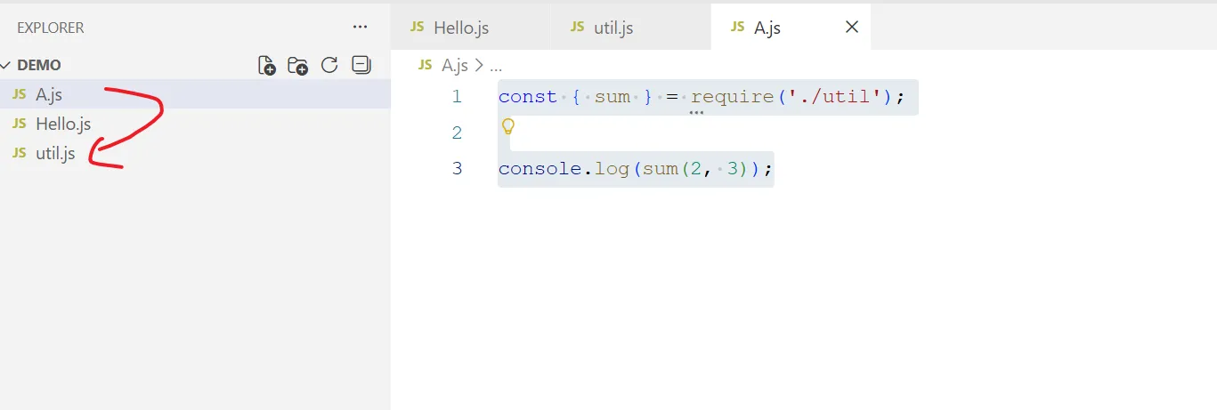 const { sum } = require('./util'); console.log(sum(2, 3));