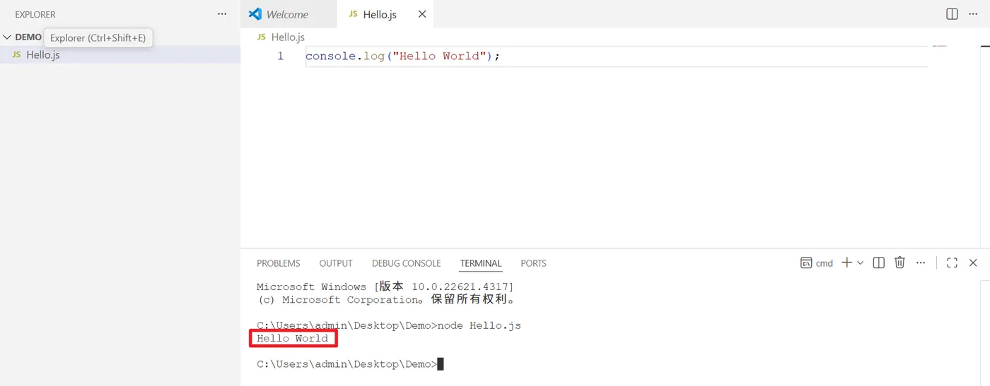 如果我们需要编写并运行一段js代码,实际非常简单,只需要创建一个后缀为js的文件,然后输出对应的文本