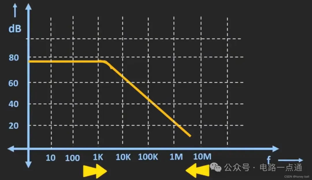 共模抑制比频率曲线图:当频率处于高频的时候,共模抑制比就会大幅减小,无法抑制共模信号: