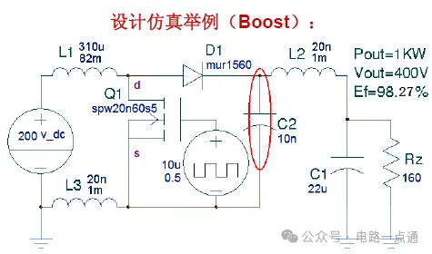 将开关管Q1、拓扑续流二极管D1和一个无损的拓扑电容C2组成一个在布线上尽可能简短的吸收回路。