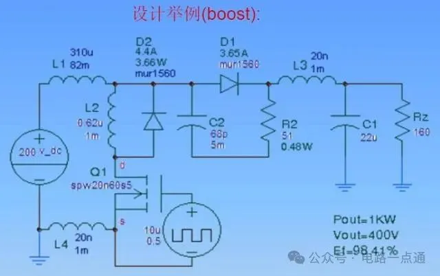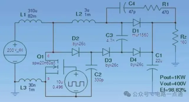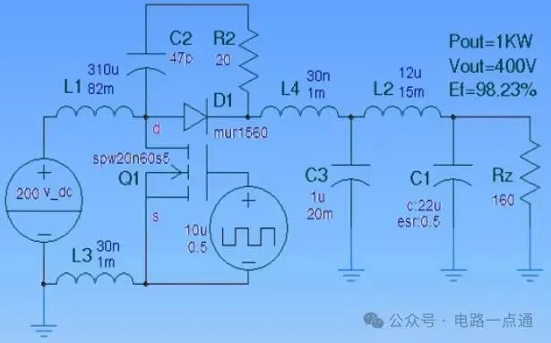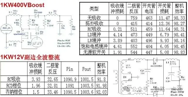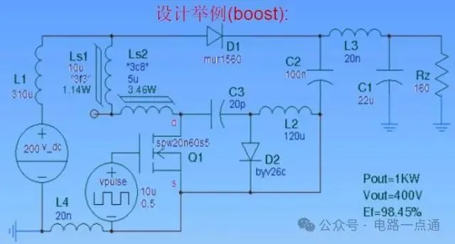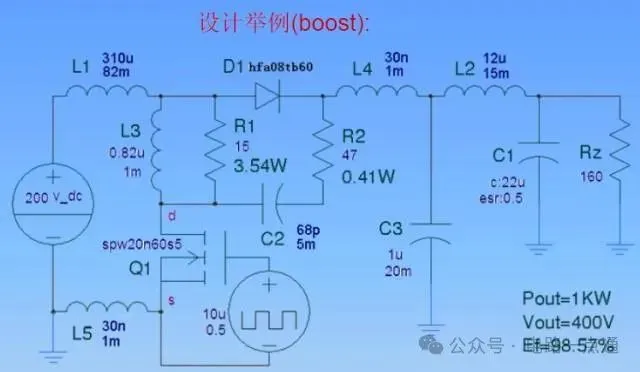 4、适当的缓冲电感(L3)参数可以大幅度减少开关管损耗,实现高效率。
