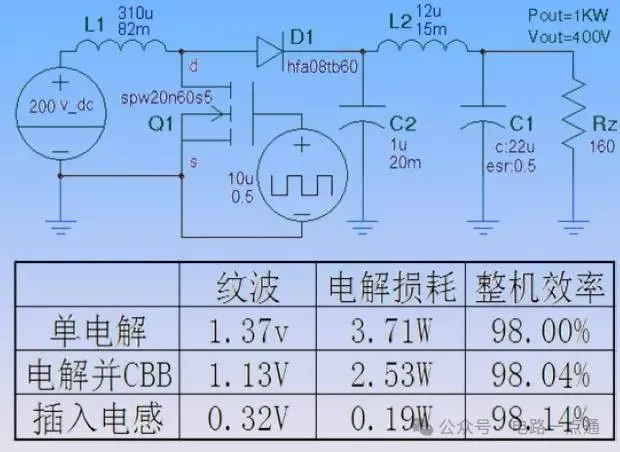 3、提出的办法是:用电感将电解和CBB分开,CBB位于高频纹波电流侧,电解位于直流(工频)侧,各自承担对应的滤波任务。