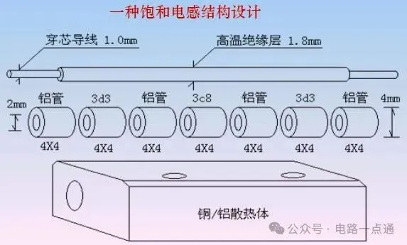 在其他条件相同情况下,相同体积的磁芯的饱和电感缓冲效果大致相当。既然如此,磁芯可以按照最有利于散热的磁路进行设计。比如细长的管状磁芯比环状磁芯、多个小磁芯比集中一个大磁芯、穿心电感比多匝电感显然具有更大的散热表面积。