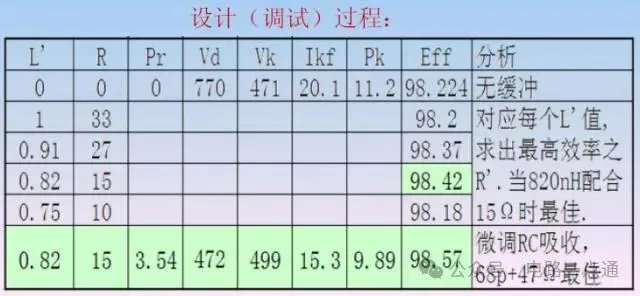 比如对二极管反压的吸收,即使其他情况完全相同,使用不同的二极管型号需要的RC吸收参数就可能有很大差距。很难推导出一个通用的计算公式出来。
