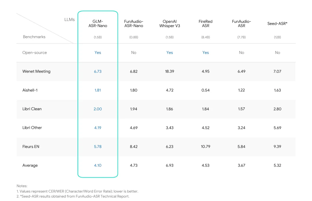 - GLM-ASR-Nano-2512:参数量仅1.5B的开源SOTA端侧语音模型;
