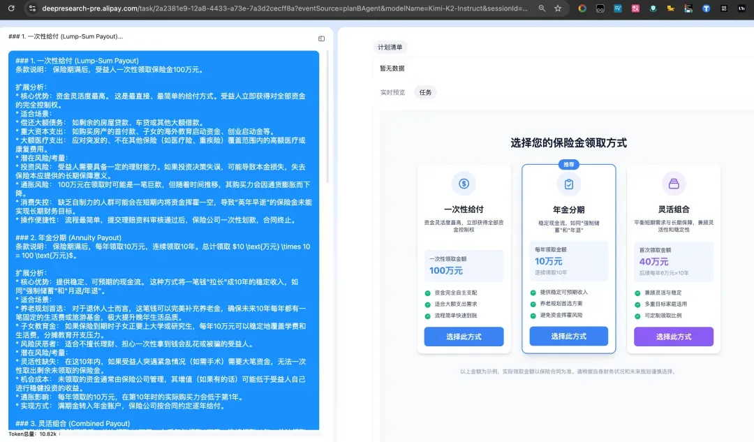 蚂蚁最近发布的基于公共数据可视化交互的应用“灵光”便是这种交互理念的代表;我正合作的保险查查项目组则在尝试在具体的保险业务背景下如何让 Agent 对不同保险产品做深度、有用的可视化解读。