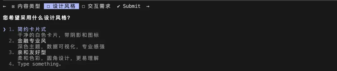 ✨ 一次多生成很多原型然后和业务、产品同学沟通,相信能很快达成共识,也不用反复改图了。有同学可能说你上面的提示词似乎是想好了的,我只有一个模糊的需求,没有这么清晰怎么办?好的,如下我便是随便询问了下: