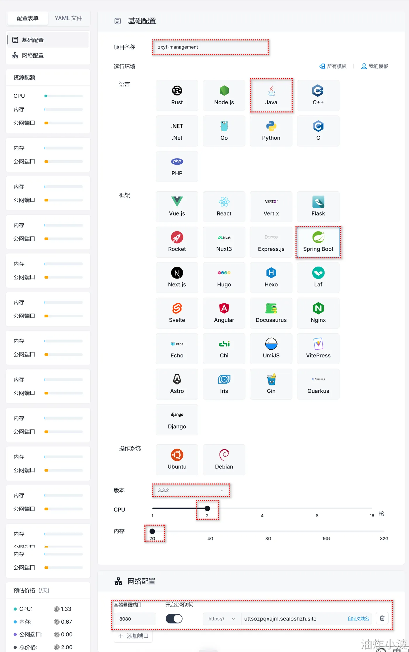 - 网络配置:默认的8080即可