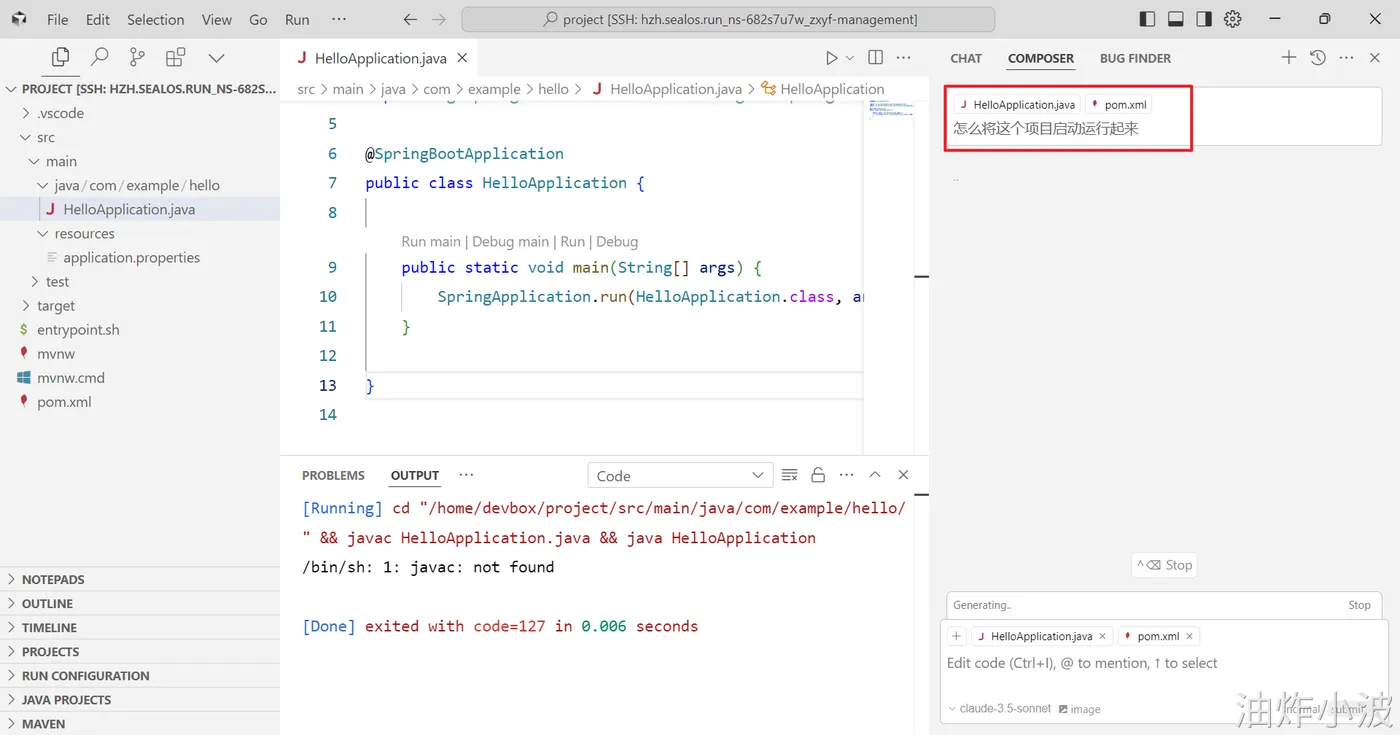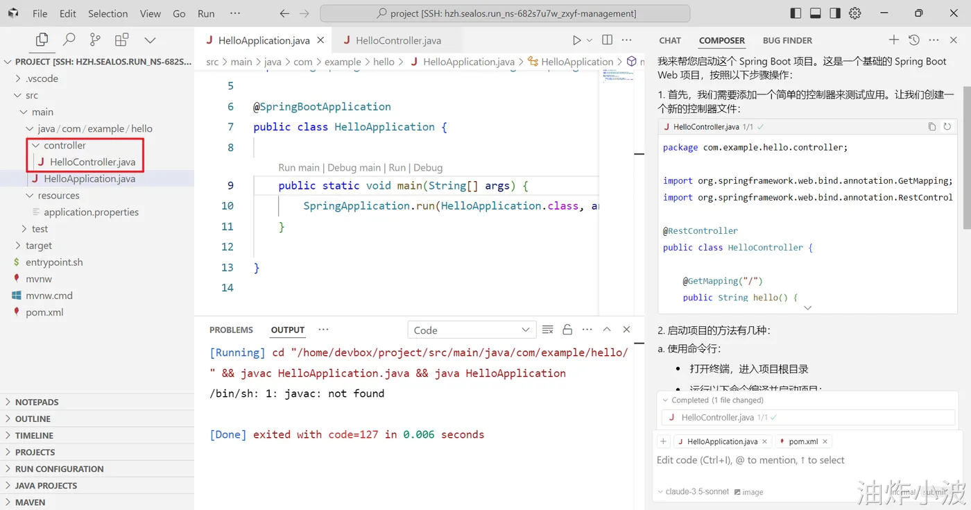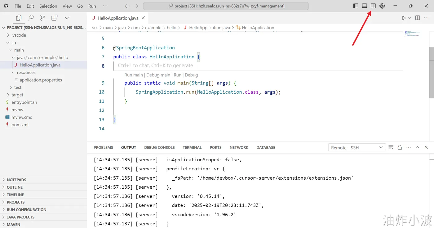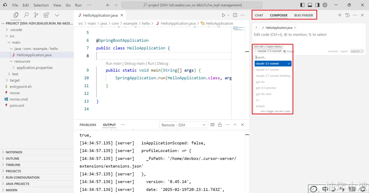 登录Sealos,然后在Devbox中创建一个SpringBoot项目,并使用Cursor开发工具打开该项目进行开发。