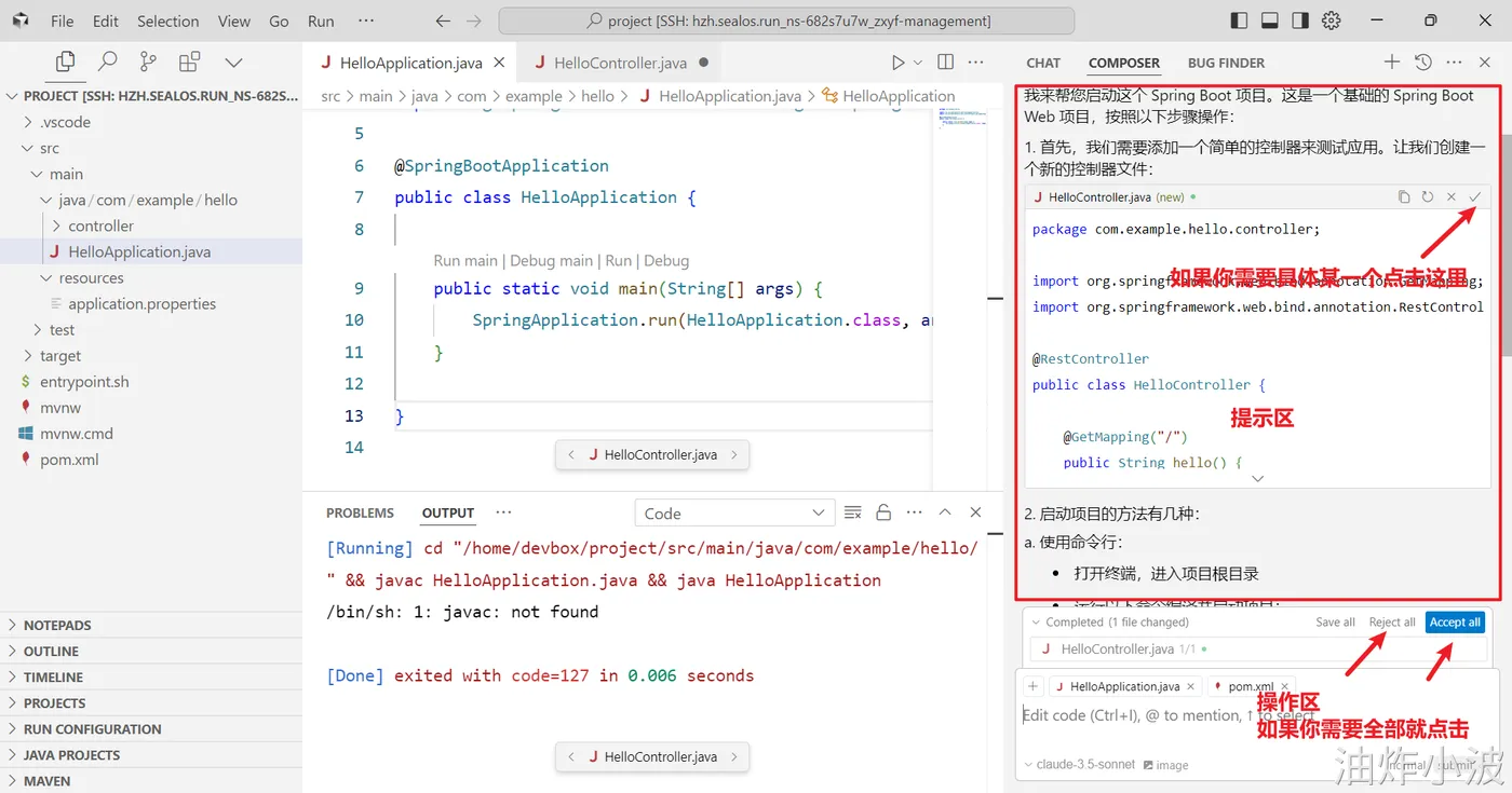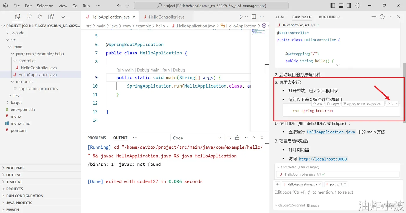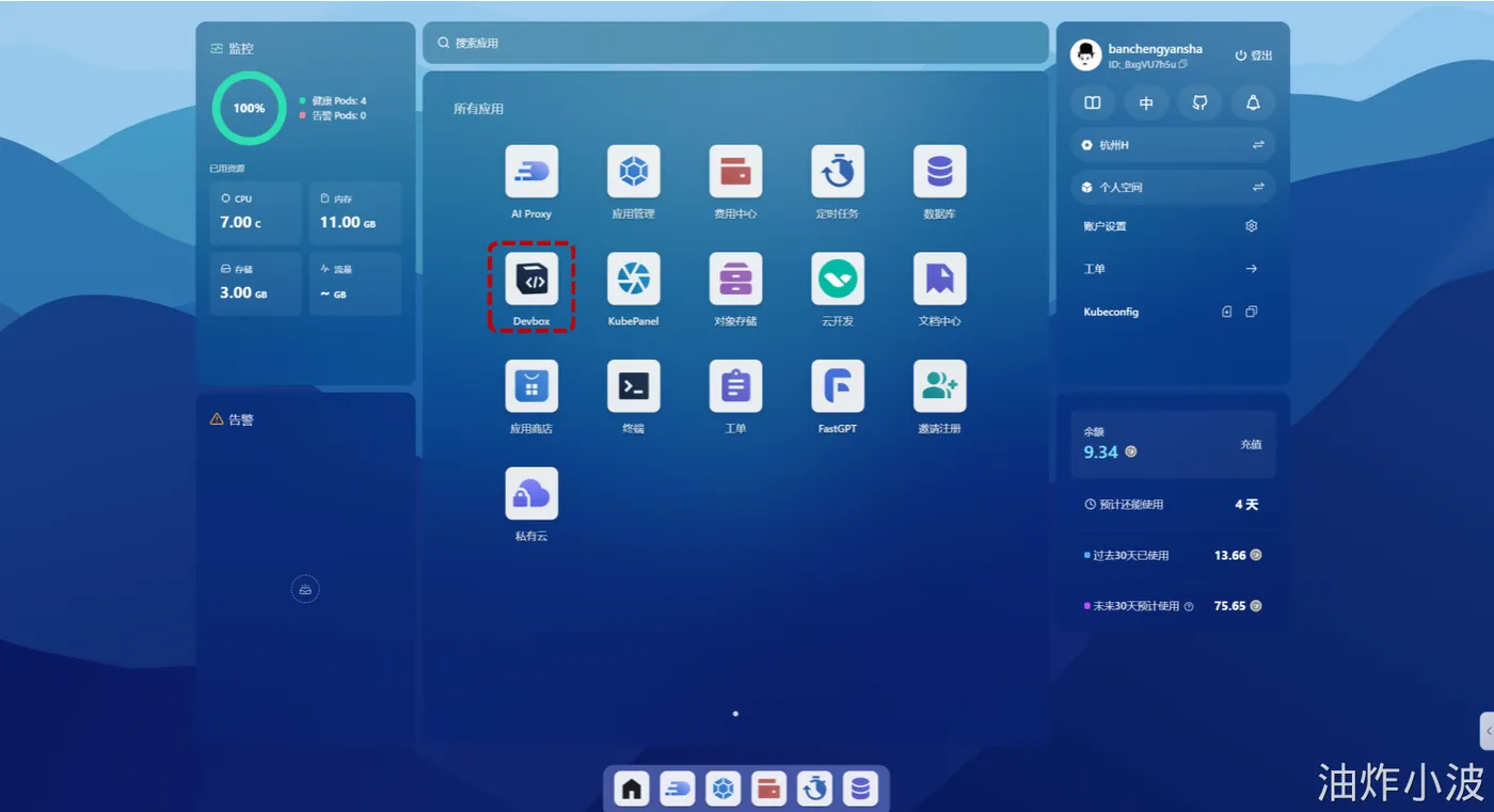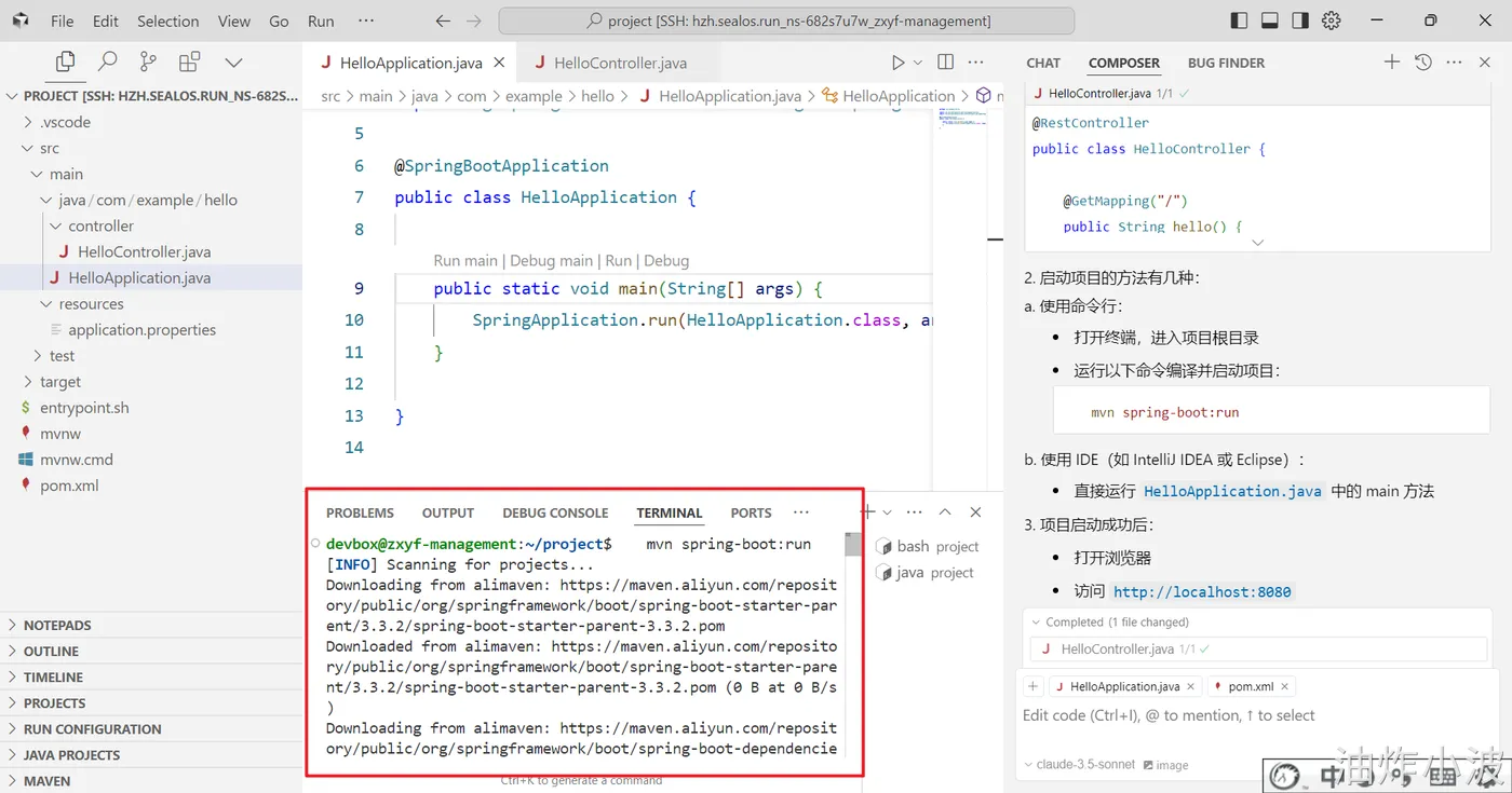 登录Sealos,然后在Devbox中创建一个SpringBoot项目,并使用Cursor开发工具打开该项目进行开发。