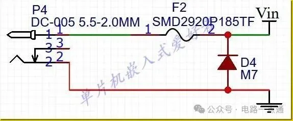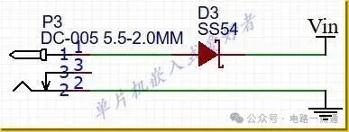 如上图,通过电路中串联一个二极管,来防止电路电源反接。如果电源供电反向接入,二极管反向截止不导通。从而起到保护电路的作用。