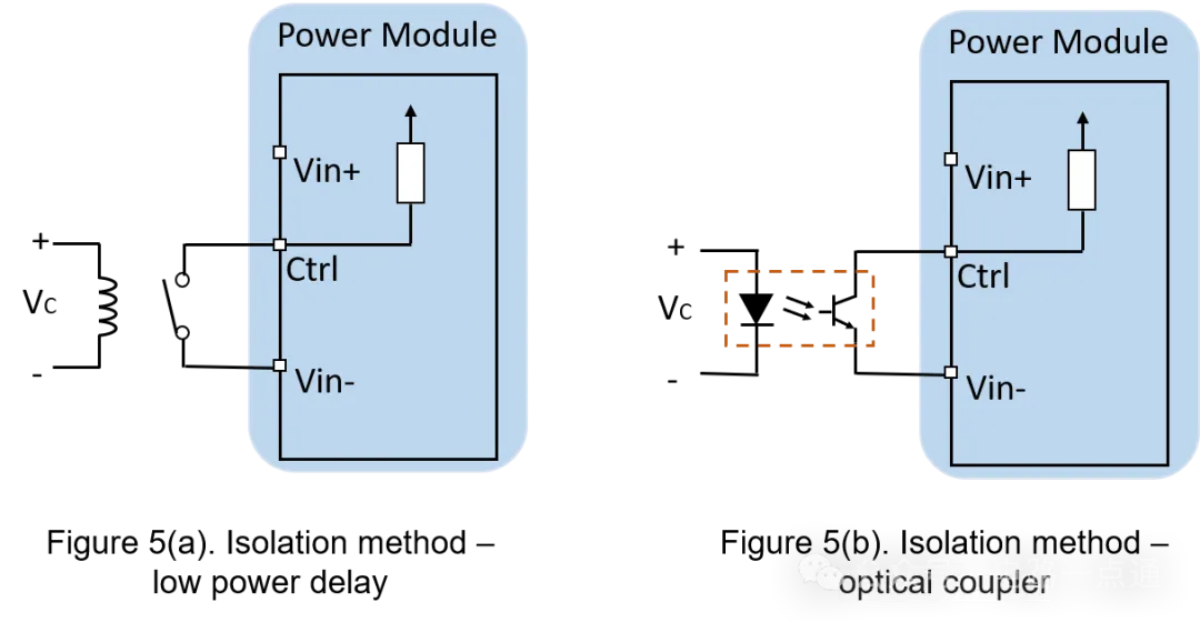 图 5 显示了隔离控制连接的推荐外部电路。如果控制电路需要隔离,可以使用继电器或光耦合器作为隔离器。