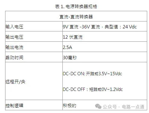 如图 4(a) 所示,我们将使用一种特定的 DC-DC 转换器,采用非隔离控制方法。该转换器具有 9 至 36V 的宽输入电压范围。稳压转换器的输出电压为 5V,输出功率为 30W,输出电流为 2.5A。规格见表 1。