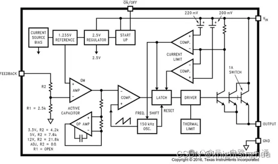 注 8:把反馈管脚和输出管脚断开,把反馈管脚连到 12V(当 VOUT=3.3V、5V 或 ADJ 时)或 15V(当 VOUT=12V时),以强制输出开关晶体管截止。