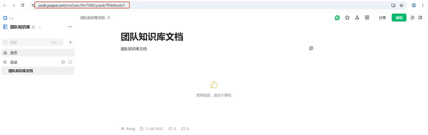 网页端,在知识库首页,点击需要同步的知识库,然后复制URL即为知识库URL。