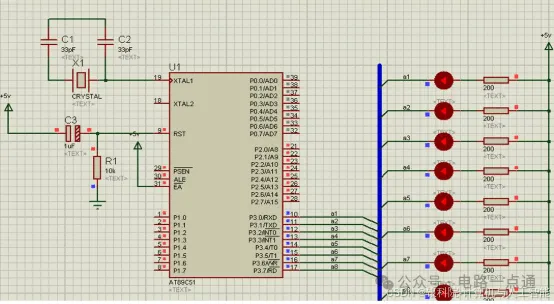 任务描述:使用定时器/计数器T1工作于方式1,采用中断方式控制P3口LED的闪烁,闪烁周期为100ms即亮50sm,熄灭50ms