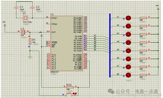 任务描述:P3.3 引脚(/INT1)上接按键 S,使用外中断控制 P2 口 8 个 LED 亮灭。当第一次按下按键 S 时,P2 口 8 位 LED 就亮,再次按下 S 按键,P2 口 8 个 LED 就灭,如此循环,就可看见 LED 灯亮灭两种状态,