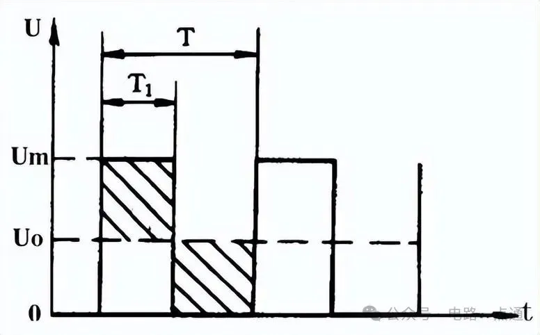 对于单极性矩形脉冲来说,其直流平均电压Uo取决于矩形脉冲的宽度,脉冲越宽,其直流平均电压值就越高。直流平均电压U。可由公式计算,