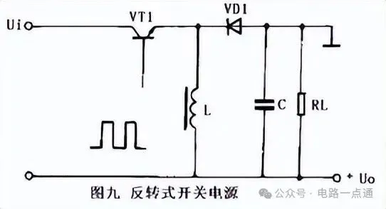 反转式开关电源的典型电路如图九所示。这种电路又称为升降压式开关电源。无论开关管VT1之前的脉动直流电压高于或低于输出端的稳定电压,电路均能正常工作。