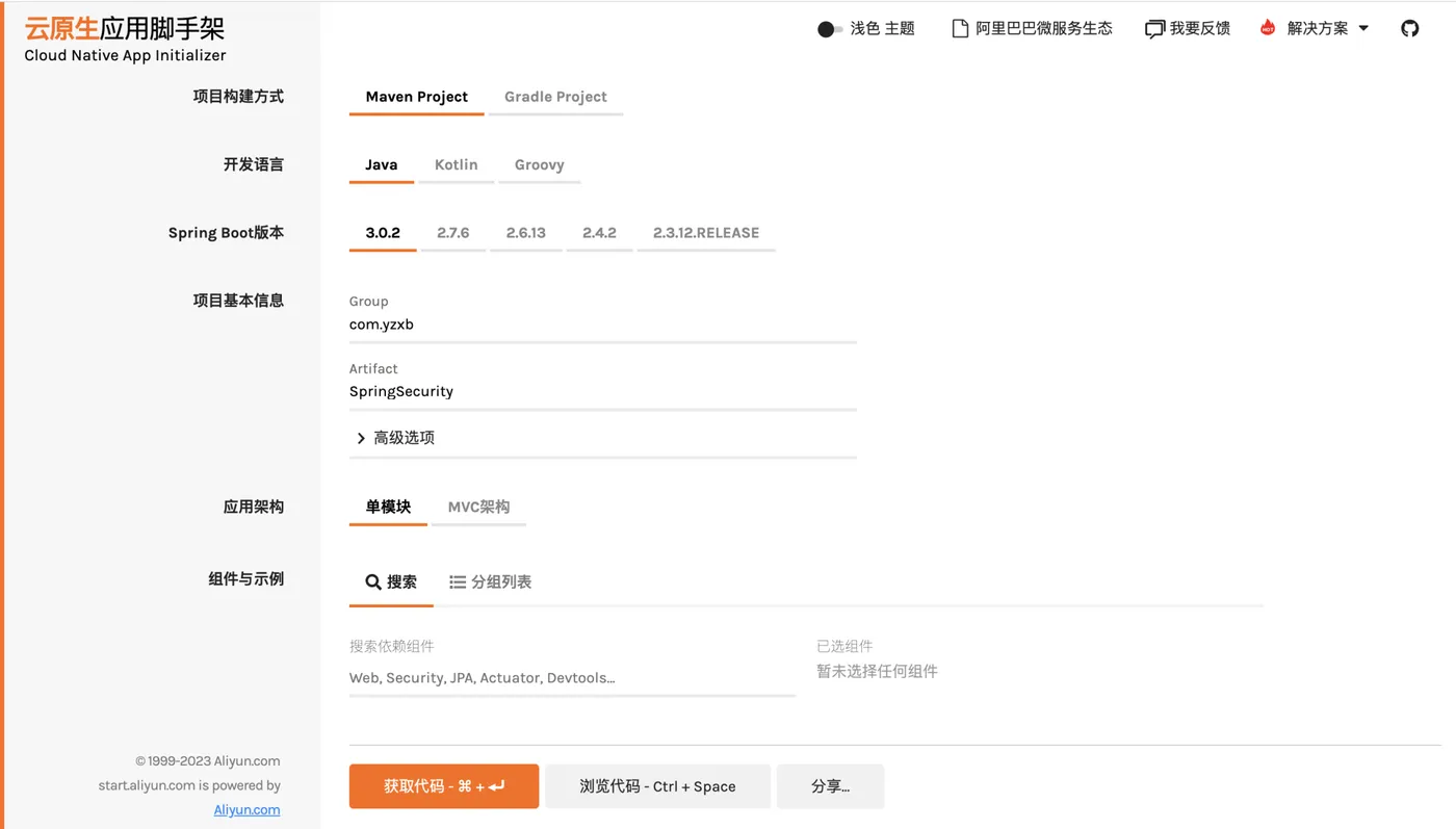 借助于阿里云脚手架,我们可以快速创建一个maven或gradle工程