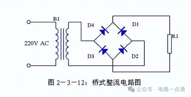 由于全波整流电路需要特制的变压器,制作起来比较麻烦,于是出现了一种桥式整流电路。这种整流电路使用普通的变压器,但是比全波整流多用了两个整流二极管。由于四个整流二极管连接成电桥形式,所以称这种整流电路为桥式整流电路。