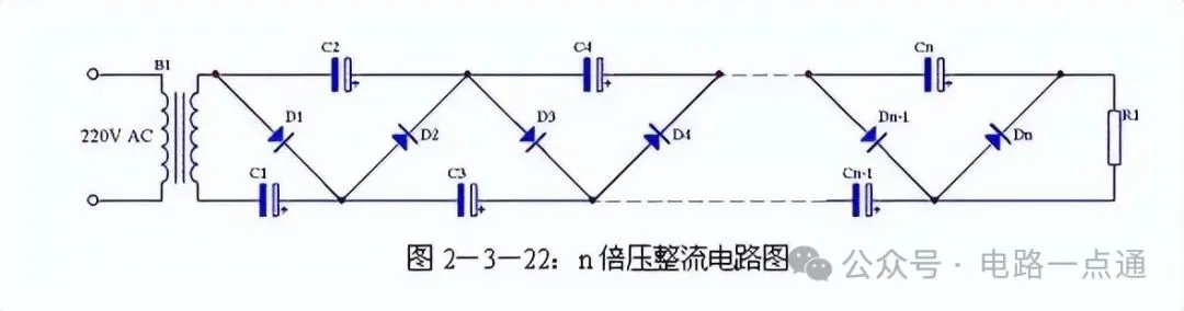 二倍压电路还可以很容易的扩展为n倍压电路,具体电路见图2-3-22。